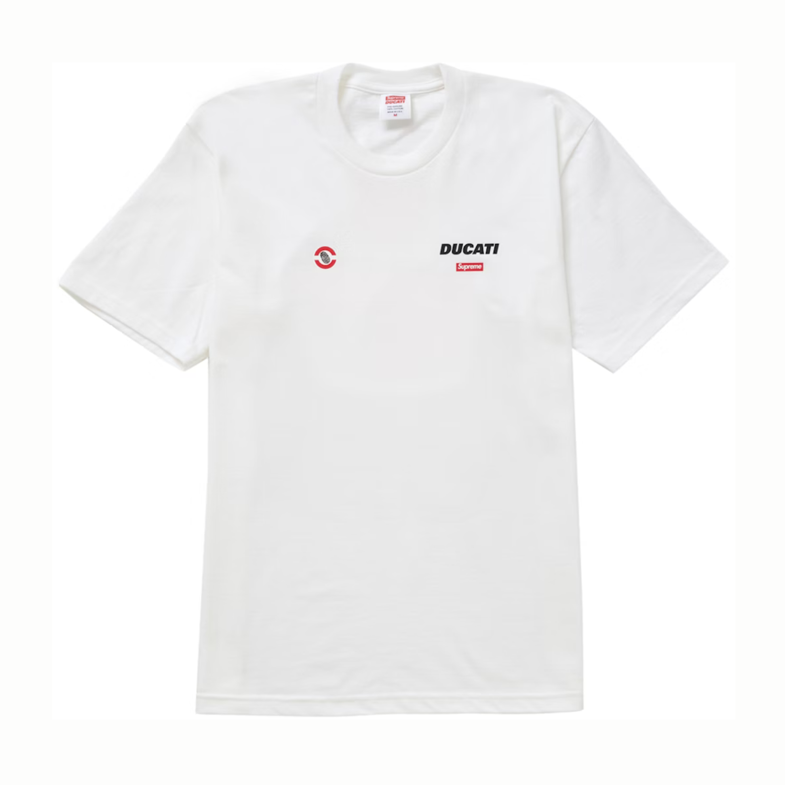 The Supreme Ducati Logo Tee is a highly sought-after piece that brings together the iconic streetwear brand Supreme and the legendary motorcycle manufacturer Ducati. This tee features a bold Ducati logo emblazoned across the chest, blending Supreme's edgy street style with Ducati's high-performance legacy. Made from premium cotton, the tee offers both comfort and durability, making it a perfect choice for casual wear.