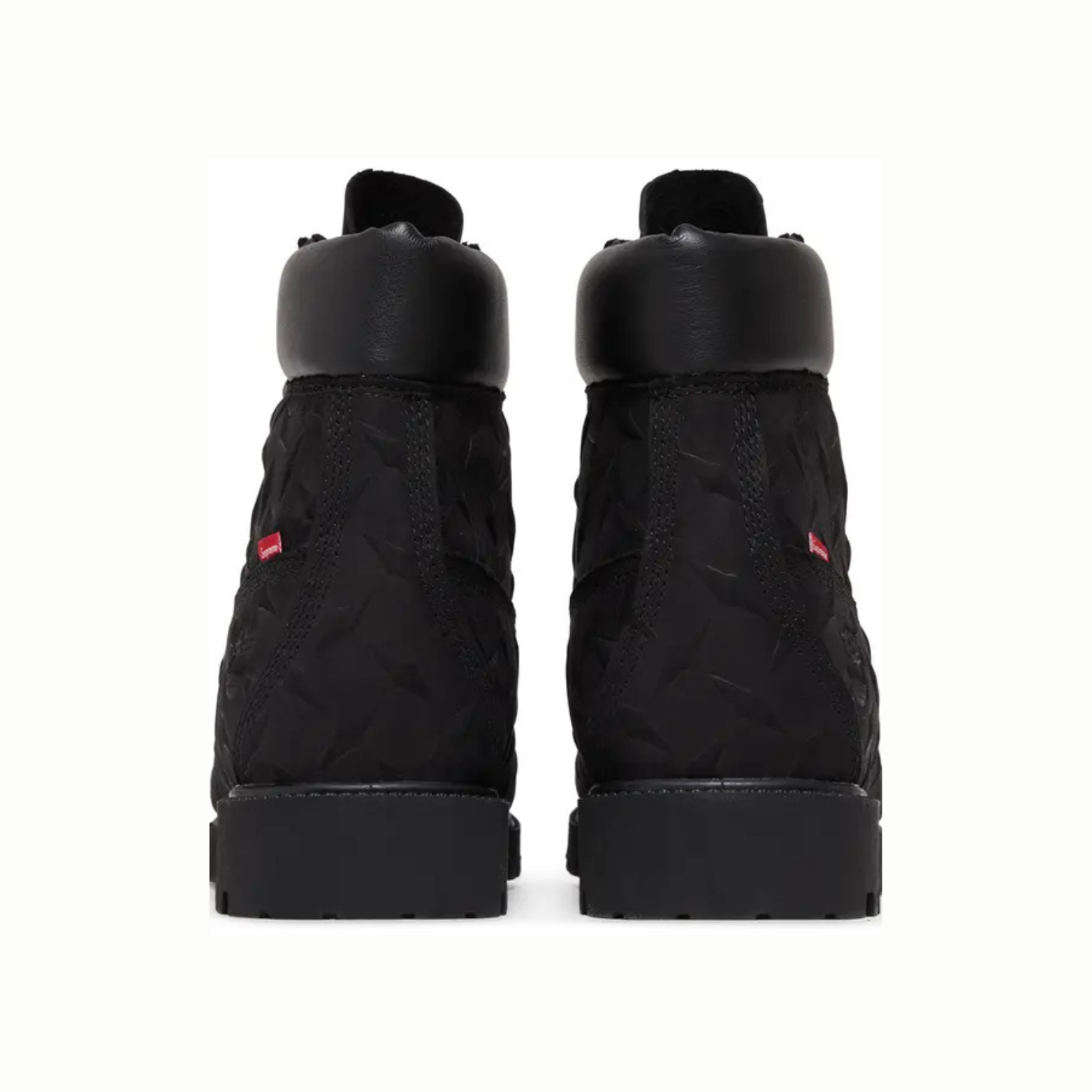 The Timberland 6" Premium Waterproof Boot Supreme Diamond Plate Black is a rugged and stylish collaboration between Timberland and Supreme, merging durability with streetwear flair. Featuring a premium black nubuck leather upper, the boots are embossed with a diamond plate pattern, giving them an industrial-inspired, edgy look. Designed for performance, they offer seam-sealed waterproof construction to keep feet dry in any weather, along with a padded collar for enhanced comfort and support. The anti-fatigue footbed provides long-lasting cushioning, while the rubber lug outsole delivers superior traction and durability. Finished with co-branded details, including a Supreme box logo tag, these boots perfectly balance functionality and street-ready style, making them a standout piece for both outdoor adventures and urban fashion.